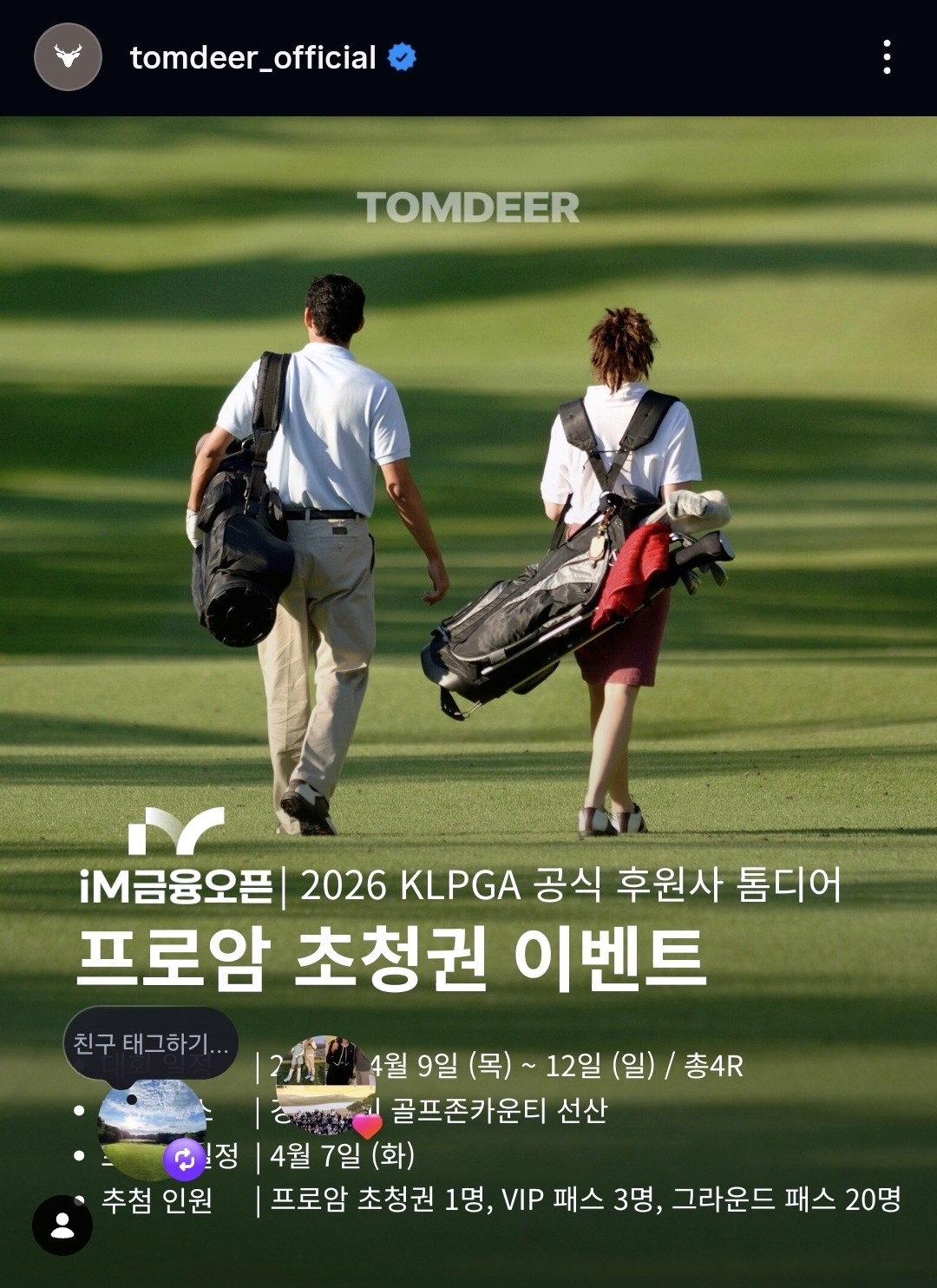 톰디어(TOMDEER)는 대한민국의 스포츠 아이웨어 및 스포츠 용품 브랜드이다. 스포츠 선글라스와 고글을 중심으로 제품을 전개하고 있으며, 러닝 및 자전거 등 아웃도어 활동에 특화된 제품군을 선보이고 있다.톰디어의 제품은 스포츠 환경에서의 활용을 고려한 기능성 설계를 특징으로 한다.TR90 소재 프레임을 적용한 경량 구조고선명 렌즈 및 편광 렌즈 적용 모델 운영아시아인 얼굴형에 맞춘 핏 설계통풍 구조(Airflow system)를 통한 김서림 방지일부 모델에는 고성능 렌즈가 적용된 제품군도 포함되어 있다.톰디어는 다음과 같은 제품군을 전개하고 있다.스포츠 선글라스스포츠 고글러닝용 액세서리 (러닝조끼, 소프트 플라스크 등)스포츠 보호대 및 기능성 웨어#KLPGA #im금융오픈 #골프존카운티 #골프존카운티..